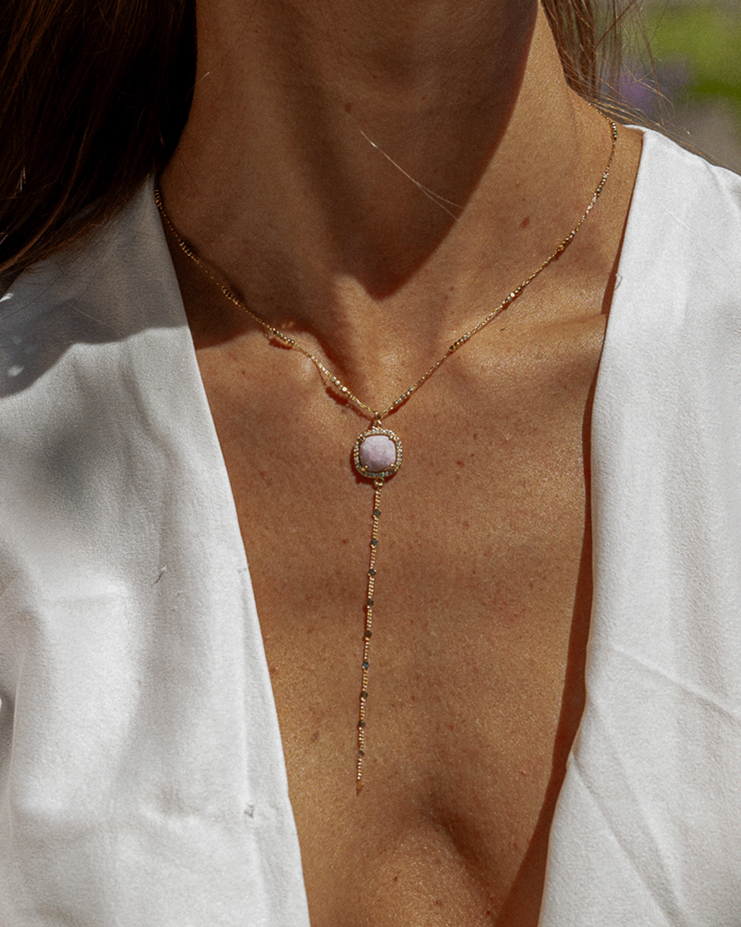 La Piedra natural es originaria de África, de tonos lilas suaves. Asociada a la calma, el equilibrio emocional y la serenidad. Se vincula con una energía delicada, ideal para quienes buscan armonía y conexión interior.
